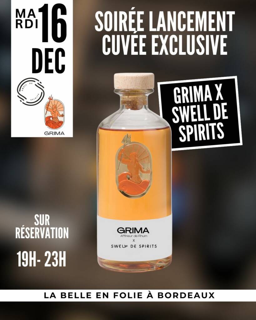Pour cette fin d’année 2025, Grima s’associe avec Swell the Spirits, embouteilleur indépendant girondin reconnu pour ces cuvées qui cassent les codes en s’inspirant du monde.